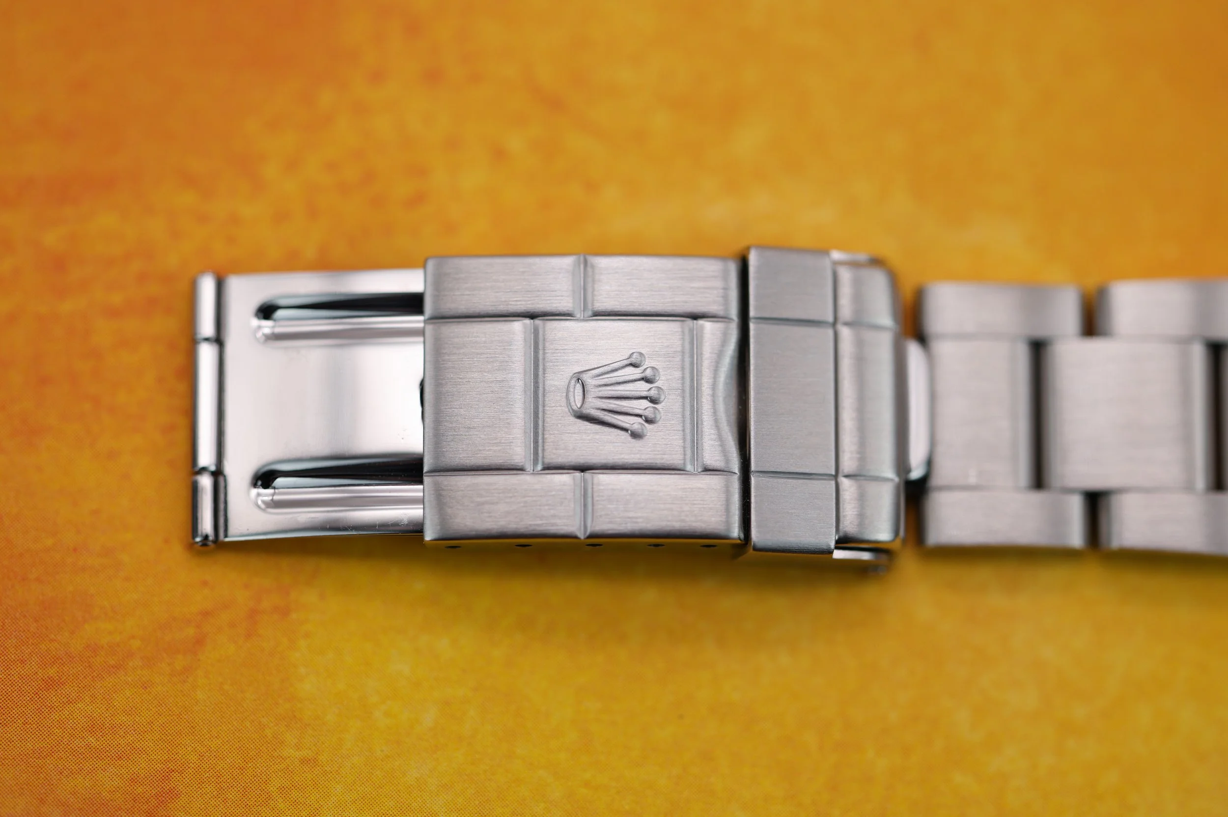 Bracelet: The 12 link oyster bracelet is in excellent condition and remains tight. The clasp is stamped with an X code dating it to 1999.