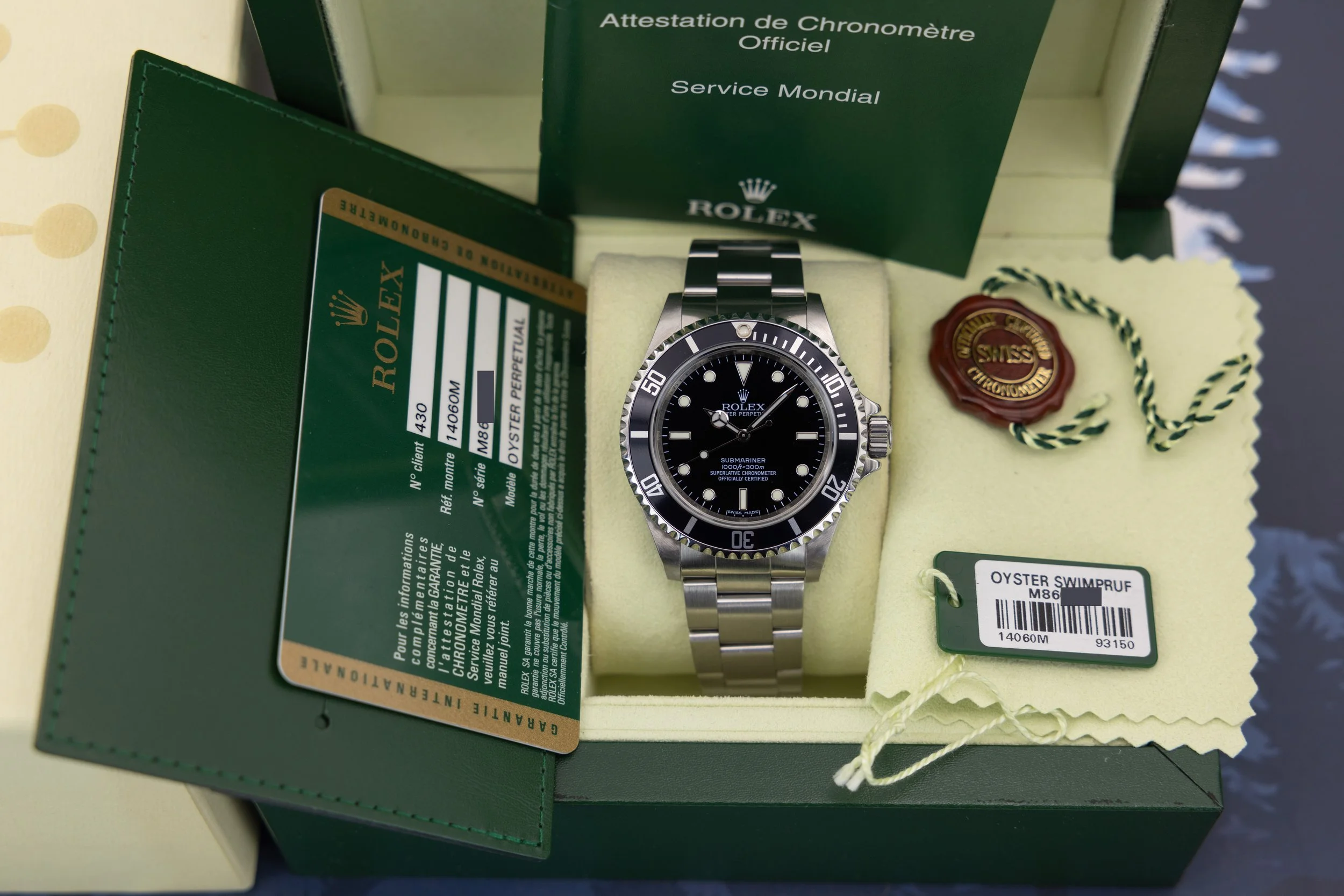 Accessories: Inner/outer boxes, booklet, hangtags, cleaning cloth, and original warranty card.