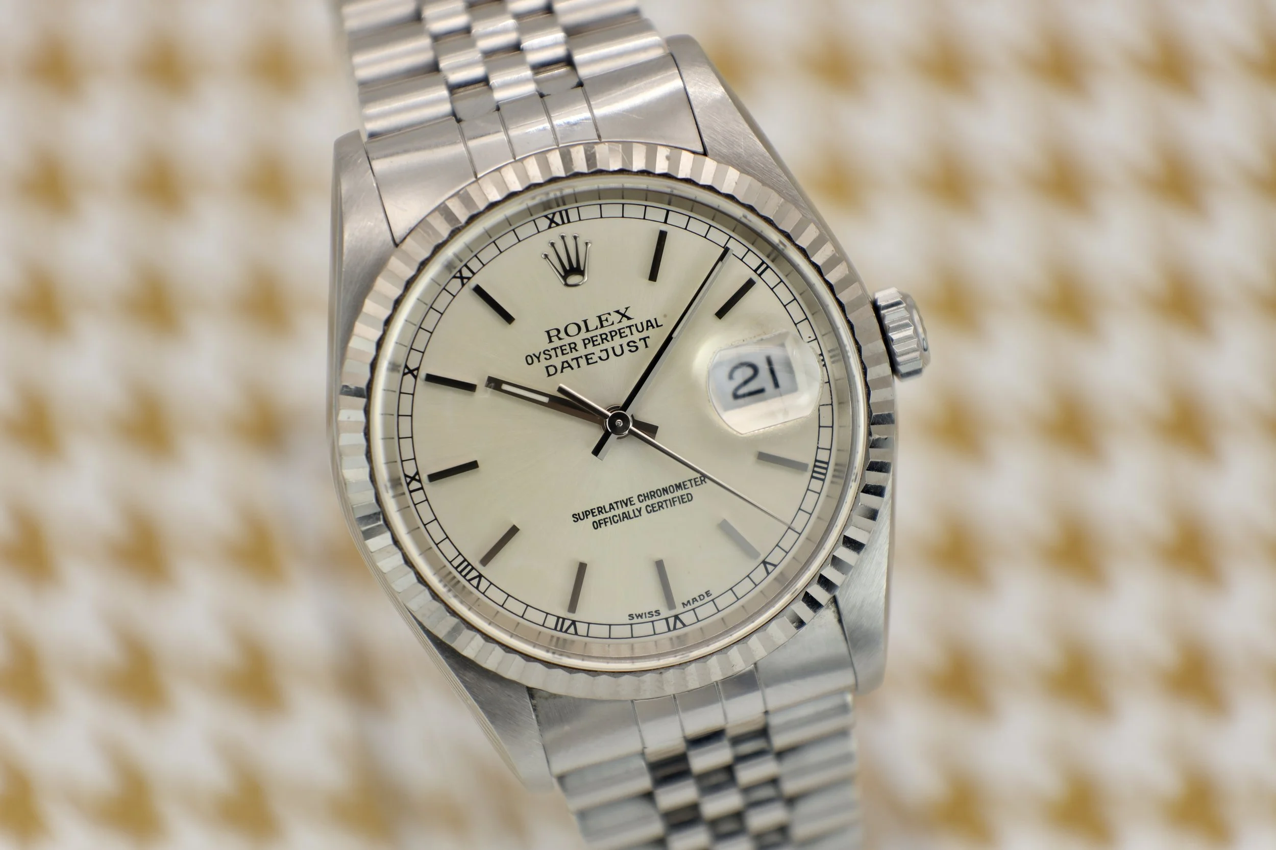 Watches 1991 Rolex GMT Master II Ref. 16710 Coke | Creamy Patina $0.00 Sold out Sold Out Added! 1998 Rolex Submariner Ref. 14060 | 2022 Rolex Service $0.00 Sold out Sold Out Added! 1961 Rolex Datejust Ref. 1601 | Touch of Gold $0.00 Purchase Added! 2001 Rolex Explorer I Ref. 114270 | Box and Papers $0.00 Sold out Sold Out Added! 2001 Rolex Submariner Ref. 14060m $0.00 Sold out Sold Out Added! 1986 Rolex Ladies Datejust Ref. 69173 | Champagne Dial $0.00 Sold out Sold Out Added! 2006 Rolex Submariner Ref. 16610LV Kermit | Box and Papers | Serviced $0.00 Sold out Sold Out Added! 1990 Rolex Submariner Ref. 16610 | Creamy Patina $0.00 Sold out Sold Out Added! 2000 Rolex GMT Master II Ref. 16710 Pepsi | 2018 Rolex Service Card $0.00 Sold out Sold Out Added! 2002 Rolex Explorer II Ref. 16570 Polar | Box and Papers $0.00 Sold out Sold Out Added! 1990 Rolex Ladies Datejust Ref. 68274 | Like New Condition $0.00 Sold out Sold Out Added! 1999 Rolex Explorer II Ref. 16570 Polar | Box and Papers | Serviced $0.00 Sold out Sold Out Added! 1999 Rolex Explorer I Ref. 14270 | Swiss Only $0.00 Sold out Sold Out Added! 2019 Rolex Oyster Perpetual Ref. 114300 | Box and Papers $0.00 Sold out Sold Out Added! 2001 Rolex Submariner Ref. 14060M | 2023 Service | Box and Papers $0.00 Sold out Sold Out Added! 1987 Rolex Datejust Ref. 16013 | Champagne Dial | 2014 RSC Card $0.00 Sold out Sold Out Added! 2000 Rolex Day-Date Ref. 118209 18K WG | Diamond Jubilee Dial $0.00 Sold out Sold Out Added! 2001 Rolex Datejust Ref. 16200 | Cream Dial $0.00 Sold out Sold Out Added! 2019 Rolex Oyster Perpetual Ref. 114300 | White Dial | Box and Papers $0.00 Sold out Sold Out Added! 1974 Rolex Datejust Ref. 1603 | Silver Dial $0.00 Sold out Sold Out Added! 1995 Rolex Sea Dweller Ref. 16600 | Creamy Lume $0.00 Sold out Sold Out Added! 1999 Rolex Sea Dweller Ref. 16600 | Box and Papers $0.00 Sold out Sold Out Added! 1996 Rolex Datejust Ref. 16233 | White Roman Dial $0.00 Sold out Sold Out Added! 1999 Rolex Air-King Ref. 14000 | 3,6,9 Blue Dial $0.00 Sold out Sold Out Added! 1968 Rolex Day-Date Ref. 1803 | Made In Japan $0.00 Sold out Sold Out Added! 2001 Rolex Datejust Ref. 16200 | White Roman Dial | Box and Papers $0.00 Sold out Sold Out Added! Patek Philippe Ellipse Ref. 3548 | 18K YG | Blue Dial $0.00 Sold out Sold Out Added! 2001 Rolex Date Ref. 15200 | Black Dial $0.00 Sold out Sold Out Added! 1995 Rolex Explorer II Ref. 16570 Polar | Creamy Tritium $0.00 Sold out Sold Out Added! 1972 Rolex Oyster Perpetual Ref. 1003 | Silver Linen Dial $0.00 Sold out Sold Out Added! 1997 Rolex Explorer I Ref. 14270 | Creamy Tritium | Box and Papers $0.00 Sold out Sold Out Added! 1998 Rolex Air-King Ref. 14010 | Mint | Silver Dial $0.00 Sold out Sold Out Added! 2022 Rolex Explorer I Ref. 124270 | Full Set $0.00 Sold out Sold Out Added! 1999 Rolex Explorer II Ref. 16570 Polar | Box and Papers $0.00 Sold out Sold Out Added! 1990 Rolex Datejust Ref. 16234 | Silver Diamond Dial $0.00 Sold out Sold Out Added! 2004 Rolex Submariner Ref. 16610 $0.00 Sold out Sold Out Added! 2006 Rolex Submariner Ref. 14060m | Mint Condition $0.00 Sold out Sold Out Added! 1999 Rolex Explorer I Ref. 14270 | Like New Condition $0.00 Sold out Sold Out Added! 2021 Omega Speedmaster Professional Moonwatch Ref. 310.32.42.50.01.002 | Full Set $0.00 Sold out Sold Out Added! 2001 Rolex GMT Master II Ref. 16710 Pepsi | Serviced | Box and Papers $0.00 Sold out Sold Out Added! 1998 Rolex Explorer II Ref. 16570 | Creamy Tritium $0.00 Sold out Sold Out Added! 1989 Rolex Day-Date Ref. 18038 | Red Vignette Dial | Papers $0.00 Sold out Sold Out Added! 1995 Rolex Day-Date Ref. 18238 | Jubilee Diamond Dial | LNOS $0.00 Sold out Sold Out Added! 2013 Rolex Submariner Ref. 116610 | Full Set $0.00 Sold out Sold Out Added! 2004 Rolex Explorer II Ref. 16570 | Box and Papers $0.00 Sold out Sold Out Added! 2000 Rolex Datejust Ref. 16233 | Champagne Dial | Box and Papers $0.00 Sold out Sold Out Added! 1994 Rolex Air-King Ref. 14010 | Blue Dial $0.00 Sold out Sold Out Added! 1994 Rolex Submariner Ref. 14060 | Creamy Patina $0.00 Sold out Sold Out Added! 2018 Grand Seiko Ref. SBGH267 | Heritage Hi-Beat 36000 Whirlpool | Limited Edition $0.00 Sold out Sold Out Added! 1994 Rolex Submariner Ref. 14060 | Creamy Patina | Box and Papers $0.00 Sold out Sold Out Added! 1993 Datejust Ref. 16234 | Silver Dial $0.00 Sold out Sold Out Added! 1990 Rolex Submariner Ref. 14060 | Creamy Patina | Box and Papers $0.00 Sold out Sold Out Added! 1999 Rolex Submariner Ref. 16610 | 2022 Rolex Service $0.00 Sold out Sold Out Added! 2001 Rolex Submariner Ref. 14060m | Box and Papers $0.00 Sold out Sold Out Added! 1994 Rolex Datejust Ref. 16233 | Gray Roman Dial $0.00 Sold out Sold Out Added! 1998 Rolex Ladies Datejust Ref. 69173 | Champagne Dial | Papers $0.00 Sold out Sold Out Added! 2004 Rolex GMT Master II Ref. 16710 Pepsi $0.00 Sold out Sold Out Added! 1995 Rolex Air-King Ref. 14000 | Box and Papers $0.00 Sold out Sold Out Added! 2014 Rolex GMT Master II Ref. 116710BL | Box and Papers $0.00 Sold out Sold Out Added! 1995 Rolex Datejust Ref. 16233 | Blue Dial $0.00 Sold out Sold Out Added! 2017 Rolex Explorer I Ref. 214270 | Full Set $0.00 Sold out Sold Out Added! 1971 Rolex Datejust Ref. 1601 | Just a Touch of Gold $0.00 Sold out Sold Out Added! 2019 Rolex Explorer II Ref. 216570 Polar | Full Set $0.00 Sold out Sold Out Added! 2004 Rolex GMT Master II Ref. 16710 Pepsi | Box and Papers $0.00 Sold out Sold Out Added! Patek Philippe 18K YG Calatrava Ref. 3410 | Hausmann & Co. Dial $0.00 Sold out Sold Out Added! 1996 Rolex Submariner Ref. 14060 | Creamy Patina $0.00 Sold out Sold Out Added! 1999 Rolex Zenith Daytona Ref. 16523 | White Dial | Papers $0.00 Sold out Sold Out Added! 1993 Rolex Explorer II Ref. 16570 Polar $0.00 Sold out Sold Out Added! 1991 Rolex Daytona Ref. 16518 | 18K YG | White Diamond Dial $0.00 Sold out Sold Out Added! 2002 Rolex Air-King Ref. 14000M | Black Dial $0.00 Sold out Sold Out Added! 2008 Rolex Sub